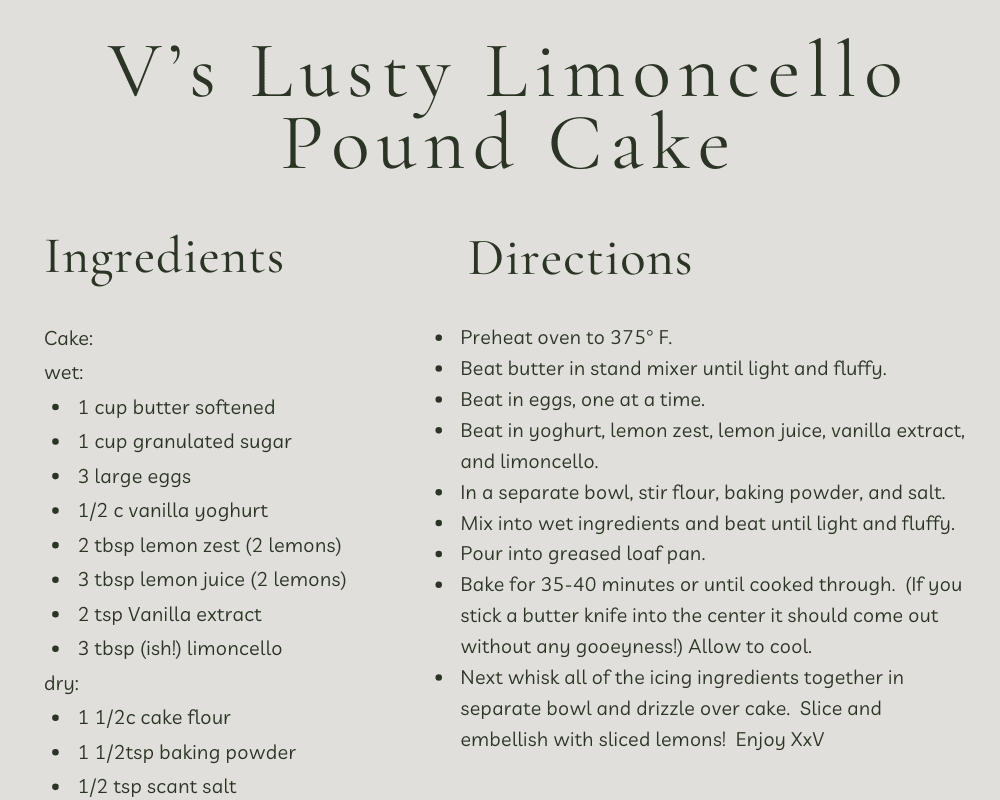 V’s Lusty Limoncello Pound Cake