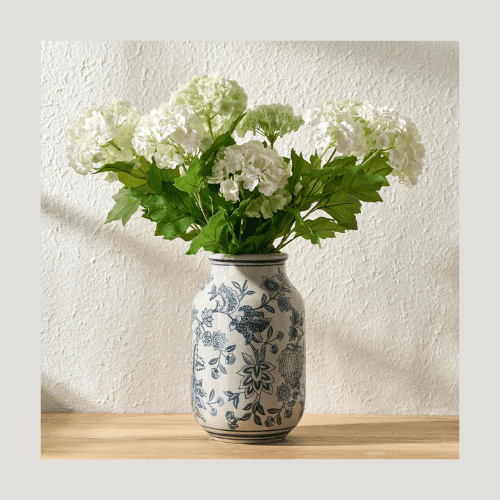 Some of the best finds are the ones that instantly set the tone. Think washed blue vases with an antique, timeworn feel, faux hydrangeas that look full and romantic, embroidered pillows with piping and classic detail, and block print bedding that brings in that soft English cottage charm. Add in a pair of beautiful blue curtains with blackout lining and suddenly the whole room feels custom, polished, and honestly far more expensive than it actually was. It is that delicious moment when you look around and think, wait… this is from Amazon?