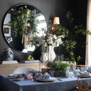 They add this effortless, collected charm that makes your porch, deck, or garden feel warm and welcoming the second you walk up. I love how they soften everything—especially paired with more structured pieces like these topiaries and the black doors. It’s that perfect balance of polished and relaxed that always feels so inviting.