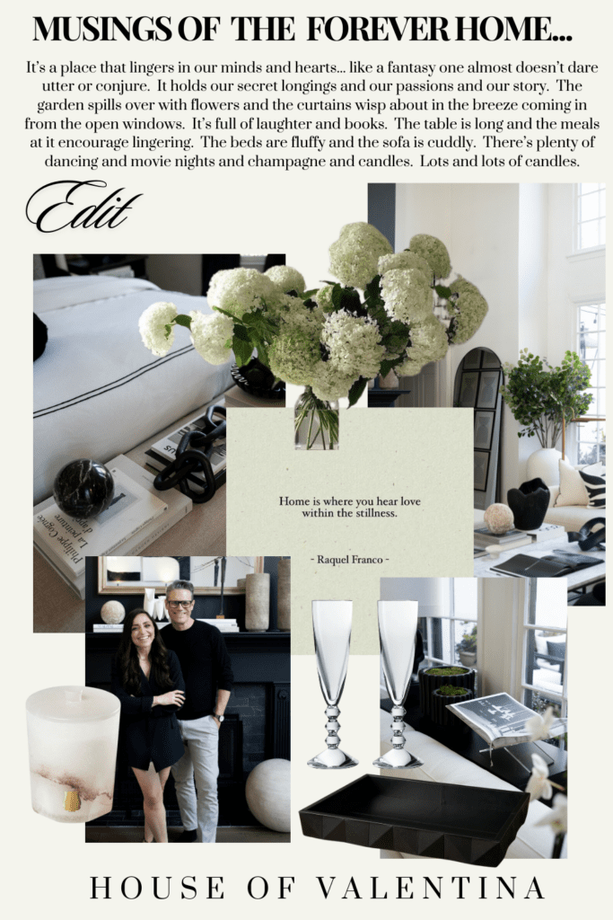 I always thought the idea of a Forever Home sounded a little too permanent, which probably won’t surprise you if you know our back story. 24 moves in 17 years? Yeah. That was nuts! But recently we’ve been talking about the idea of a Forever Home, not just being one house, but more the idea of the Home and the Life we are building together. It’s really about defining what matters to you beyond location, and the pillars on which your home is built, like love and passion, courage and kindness… and then a few favorite things, like books and candles… and a garden and champagne for celebrating, as often as possible!