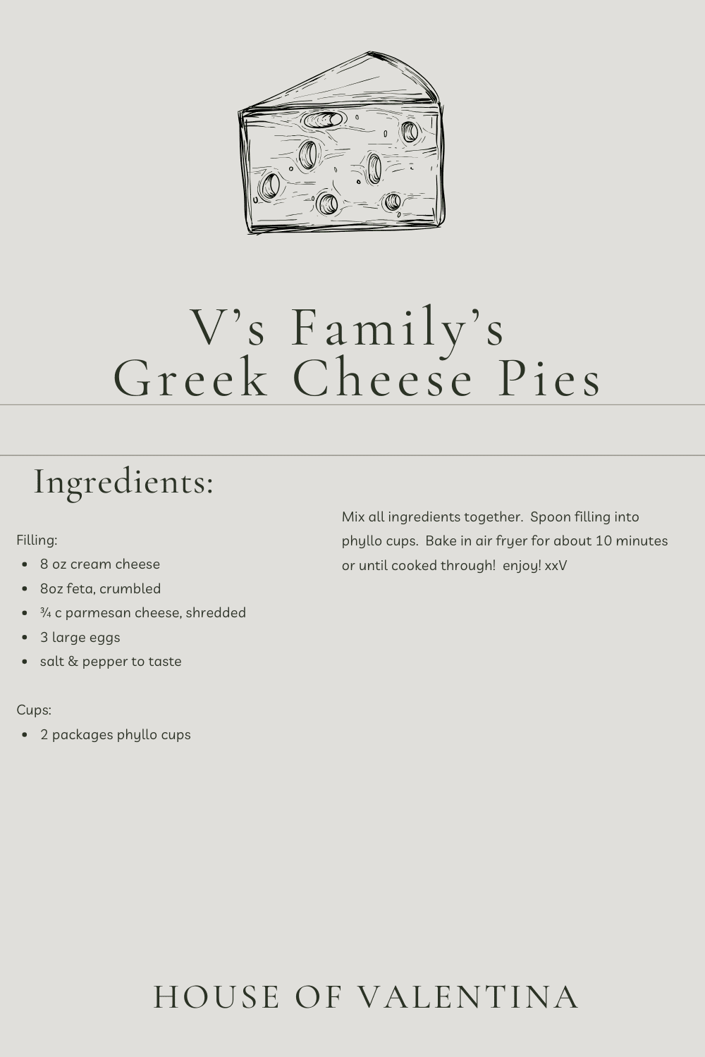 Recipes V’s Mulled Orange Cider V’s Change Your Life Pumpkin Pies V’s Family’s Greek Cheese Pies Jack’s Turkey Rub V’s & Sister’s Easy Eat Every Single One Apple Pastry V’s Famous & Festive Pancake Donuts V’s Snickerdoodle Recipe Orzo & Sausage Oven Bake V’s Tastes like Fall in your mouth Maple Bourbon Cake V’s Delicious Get in My Mouth Chocolate Balls Chocolate Pumpkin Raw Cookie Dough Balls V’s Pumpkin Chocolate Chip Vanilla Bourbon Cake Maple and Oat Raw Cookie Balls Cherry & Chocolate Raw Cookie Balls The Chocolate Bourbon Cake that Feels like Fall My Mom’s Famous Baklava V’s Can’t Wait for Autumn Apple Crumble V’s Herby Swedish Seed Crackers Mentally I’m on a Beach… With a Hugo Spritz on Vacation V Likes It Sweet and Spicy Iced Latte She’s a Georgia Peach Summer Greek Cake