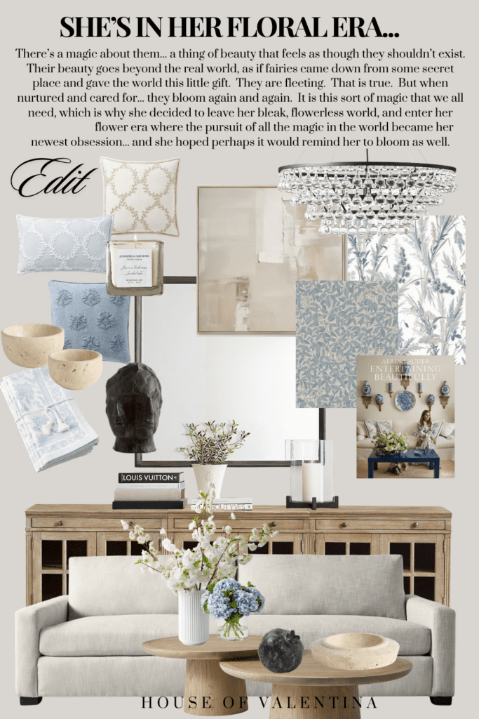 There’s something optimistic and hopeful about this palette and the infusion of florals. It is… intoxicating. I can’t get enough… as in, I’m ordering blue tile samples, floral books, and even floral wallpaper. Gasp. I KNOW!! Insert Jack checking my temp!