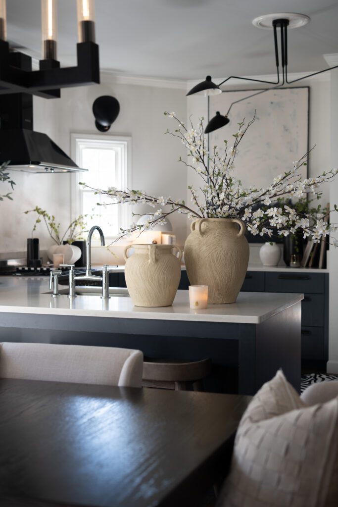 These are softer, airier, and a little more unexpected—and that’s exactly why I’m obsessed. The delicate white blooms, the subtle movement, the organic branches… they bring instant life to a space without screaming look at me. Styled on the kitchen island, they feel calm, elevated, and quietly powerful.
