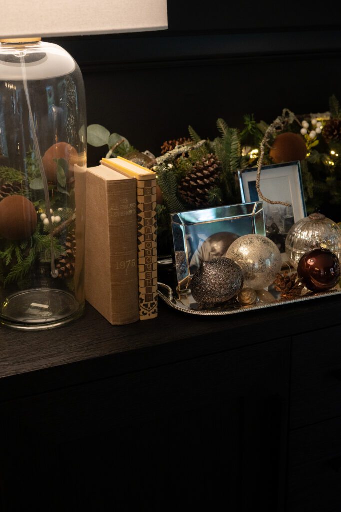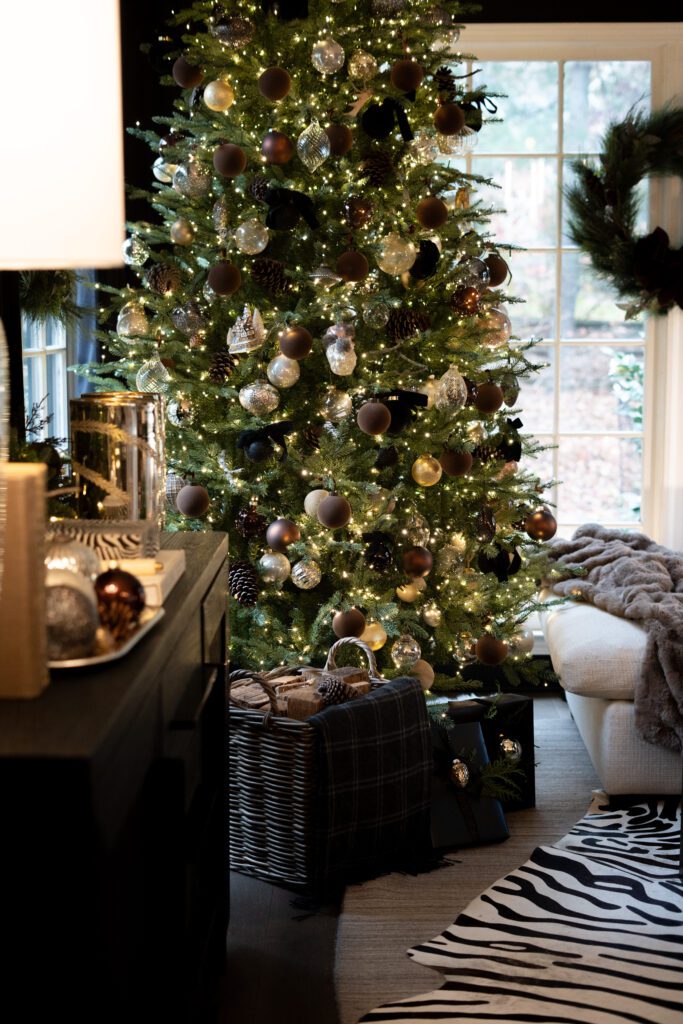 This space is Christmas at its most elevated, moody, and utterly enchanting. The tree glows like it’s lit from within — layered with bronze, black, glass, and touches of shimmer that feel rich, sophisticated, and quietly glamorous. It’s the kind of tree that makes you stop, take a breath, and whisper, “Okay… this is magic.”